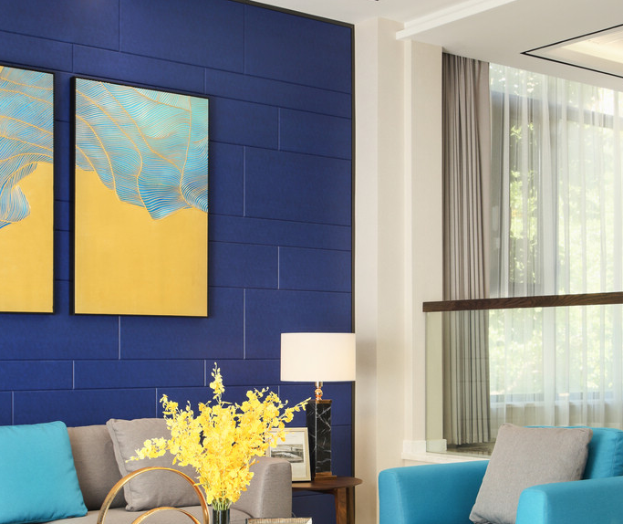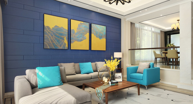 在色彩搭配上,蓝色、黄色、原木色等都凸显了自然的气息,将空间与自然的距离拉近,让人身处其中能够心境平和。以简约的色调、质朴的材质和大胆的色彩搭配丰富空间的美感。