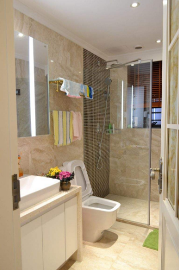 小型卫生间在装修中更注重实用性,有着看着美观但实际用途不大的材料就要避免了,特别是像双杆毛巾架这种比较占空间,实则并不能多挂两条毛巾的材料就不要选。洗脸盆和龙头材料之间的尺寸需要配套选择好,墙面装饰也可以选择一些价廉物美的国产瓷砖铺贴。