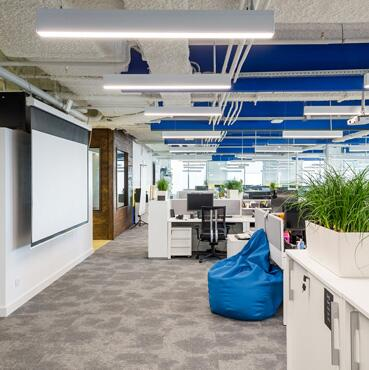 4.开放式办公室办公室装饰公司表示开放式办公室是指较多数量的工作人员共同工作的办公空间,在现代企业的办公环境中比较多见,良好的办公室设计有利于提高办公设备、设施的利用率,减少了公共交通和结构面积,缩小了人均办公面积,提高了办公场所的空间使用率。